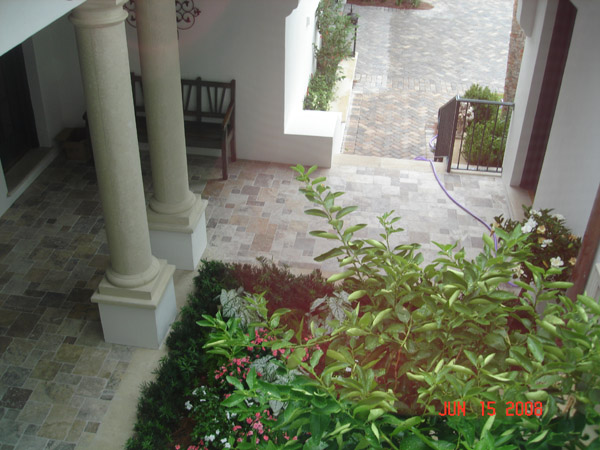 Looking down on the courtyard that is next to the front door.
